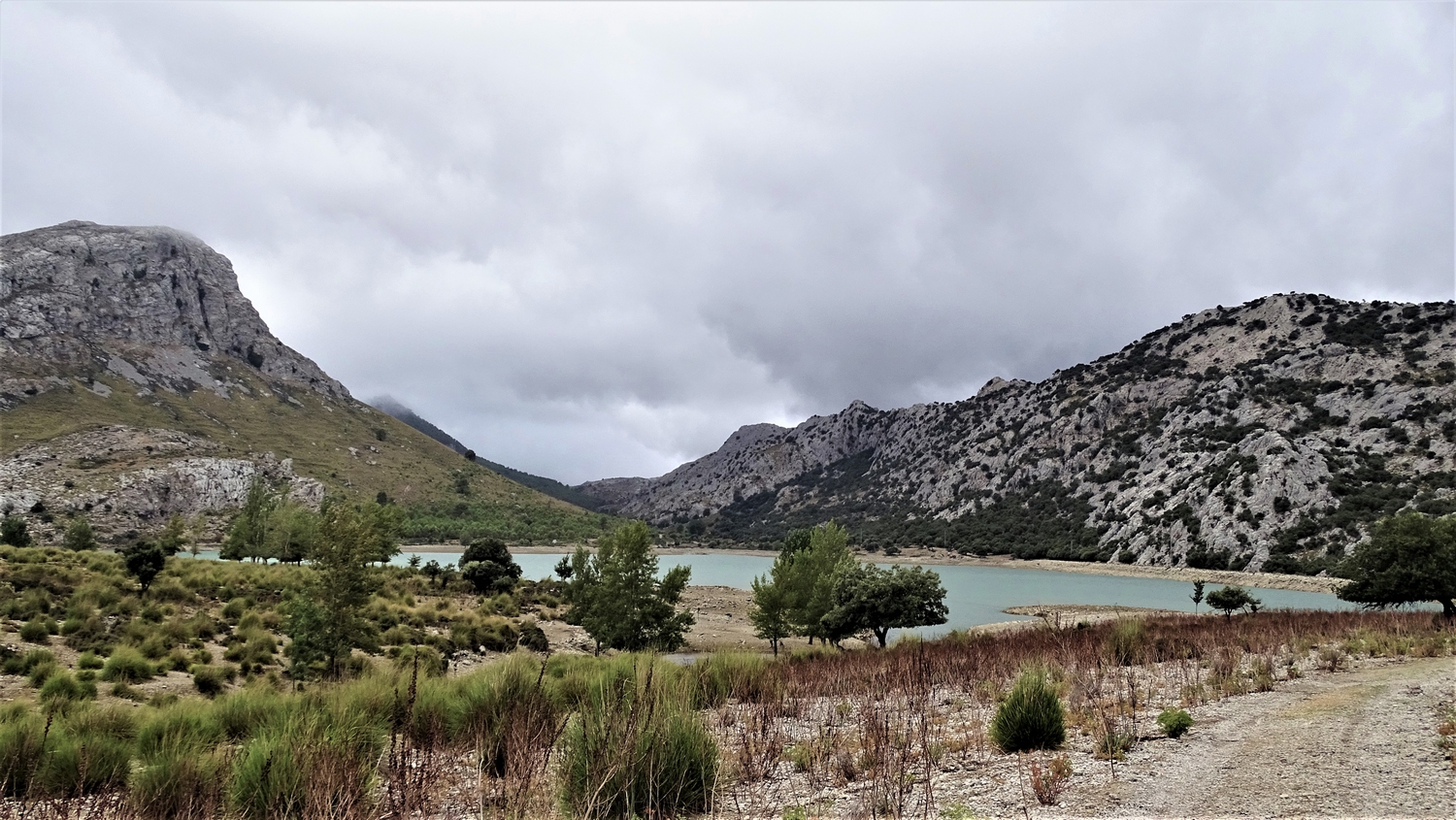 Pas découragés, nous prenons la route sous la pluie, dans les montagnes de la Serra de Tramuntana. L’ascension est difficile, croiser des bus touristiques n’est pas de tout repos ! Nous nous dirigeons vers le lac du Cuber, plus grosse réserve en eau de l’île.